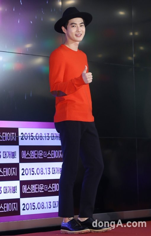 엑소의 멤버 수호가 4일 오후 서울시 강남구 코엑스 아티움에서 열린 'SM타운 더 스테이지' 개봉 기념 '2015 SMTOWN SCREEN SHOW in SEOUL'에 참석해 포토타임을 하고 있다.