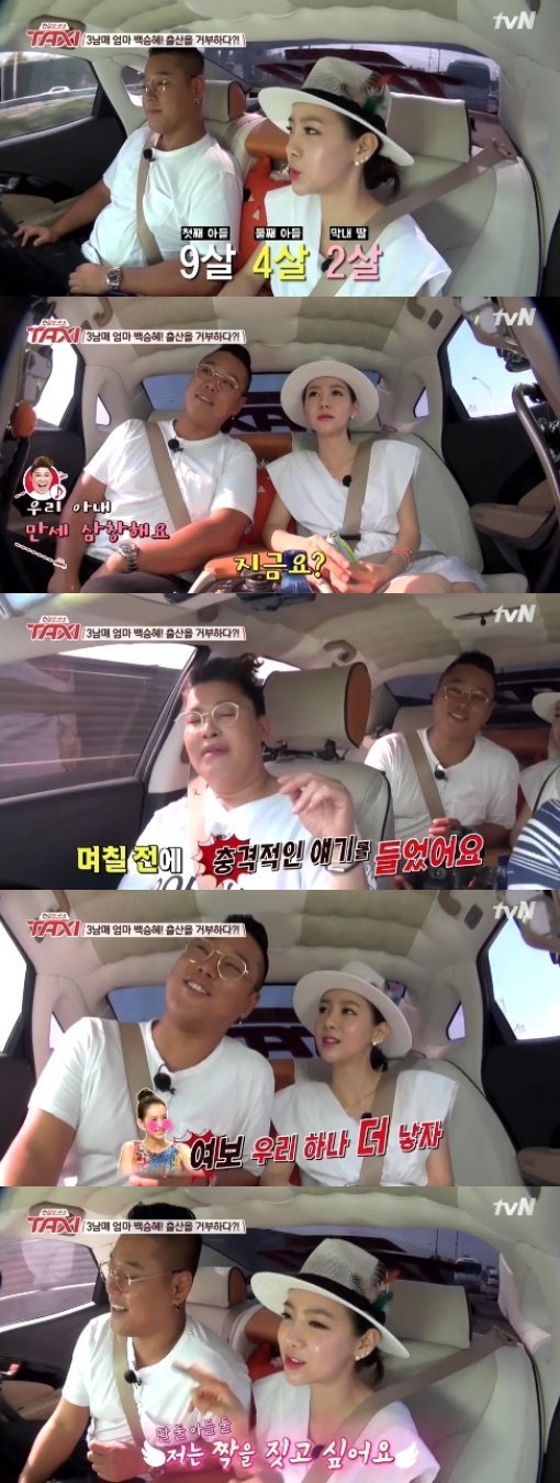 ‘택시’ 송호범 아내 백승혜가 넷째를 낳고 싶다고 말해 시선을 모았다.