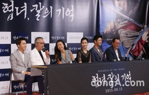 5일 오후 서울 광진구 한 멀티플렉스 건대입구에서 열린 영화 ‘협녀’ 언론배급시사회에 출연진이 참석해 인사말을 하고 있다.