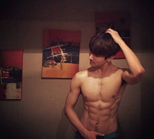 사진 속에는 상의를 탈의한 심창민이 환상적인 복근을 뽐내고 있다.
