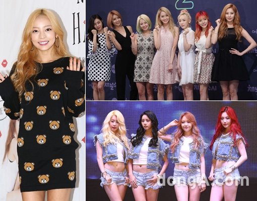 걸그룹 카라의 구하라-소녀시대-걸스데이(왼쪽부터 시계방향으로). 동아닷컴DB