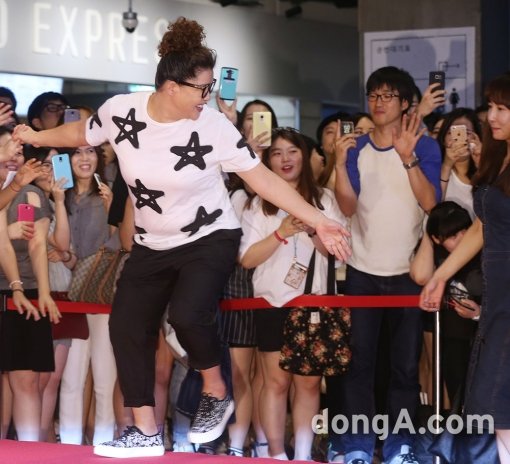 방송인 이영자(왼쪽)와 배우 최민서가 5일 오후 서울 강남구 코엑스에서 열린 영화 ‘미쓰 와이프’ VIP시사회에 참석하고 있다.