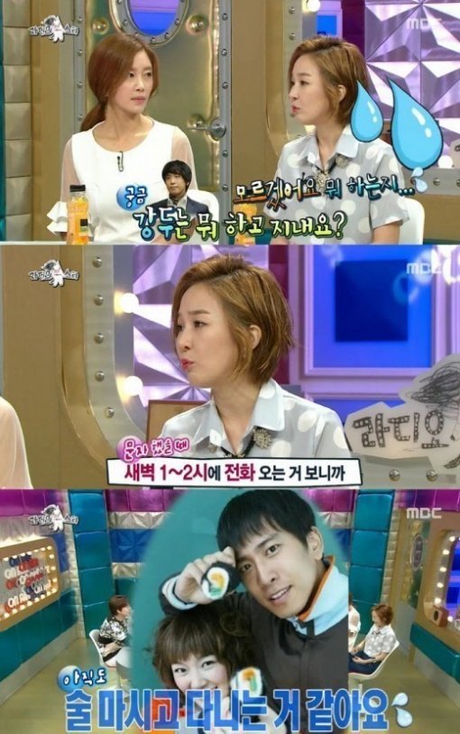이어 자두는 "불과 1, 2주 전에 어떤 작가 분한테 연락처를 받아서 한번 얼굴 보기로 했다"고 말해 관심을 집중시켰다. 이어 "강두가 요새 뭐하고 지내는지는 모르겠다. 새벽 1, 2시에 전화오는 거 보니까 아직도 술 마시고 다니는 것 같다"고 말해 웃음을 자아냈다.