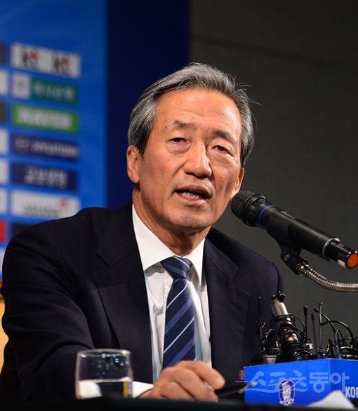 정 명예회장은 6일 서울 소공동 웨스틴조선 호텔에서 가진 간담회에서 “아시아인이 FIFA 회장이 되기는 쉽지 않지만 도전할 만한 충분한 가치가 있어 출마하기로 했다”며 ‘파리 출마 선언’ 계획을 밝혔다. 출마 선언 장소를 프랑스 파리로 택한 이유에 대해 “FIFA 본부가 있는 스위스 취리히에서 할 생각도 있었지만, 파리가 유럽 내에서 교통이 좋고 FIFA 창립 당시 본부가 있었던 곳이라는 점을 감안했다. (가장 강력한 경쟁자인) 유럽축구연맹(UEFA) 미셸 플라티니 회장이 프랑스 사람이니 그런 부분도 고려했다”고 설명했다. 이어 “(FIFA회장 출마는) 충분히 가치 있는 일이라고 생각하고 열심히 하겠다. 혼자 할 수 있는 일은 아니다. 국민 여러분이 많은 관심을 가져주시면 좋겠다”며 ‘세계 축구 대통령’을 향한 강한 의지를 드러냈다. 정 명예회장은 출마선언에 앞서 유럽 내 지지층 확보를 위해 오는 12일 조지아에서 열리는 UEFA 슈퍼컵 결승전 현장을 찾을 계획이다.