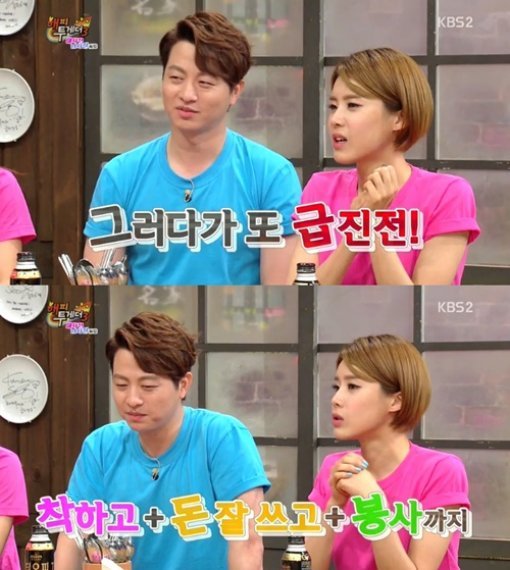6일 방송된 KBS 2TV ‘해피투게더3’에서 유상무는 절친한 개그우먼 장도연과 함께 게스트로 출연해 자신들을 둘러싼 썸에 대해 털어놨다.