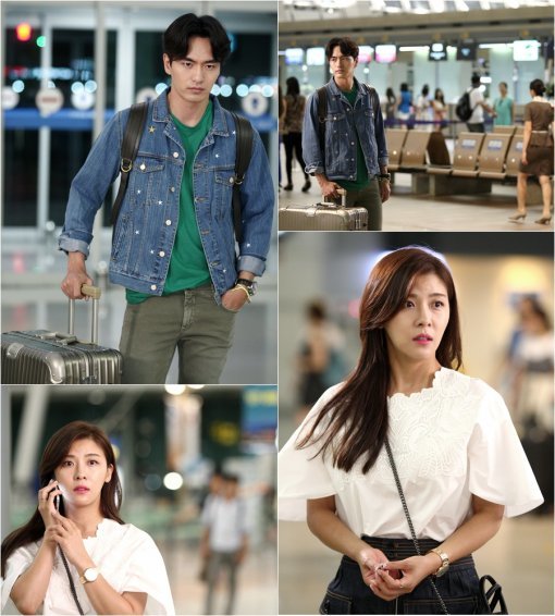 9일 ‘너를 사랑한 시간’ 측이 공개한 사진에서 오하나(하지원)와 최원(이진욱)은 공항에 있다.
