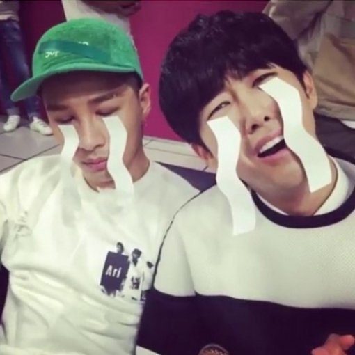 그룹 빅뱅 태양이 제국의 아이들 광희와 함께 눈물 셀카를 공개했다.