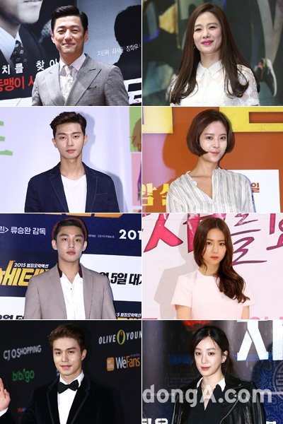 연기자 지진희-김현주, 박서준-황정음, 유아인-신세경, 이동욱-정려원( 맨 위쪽부터). 동아닷컴DB