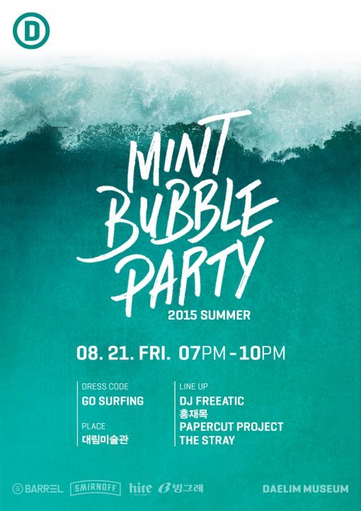 매 시즌마다 다양한 콘셉트로 진행되는 대림미술관 뮤지엄 파티는 올 여름 <2015 대림미술관 썸머 파티: 민트 버블>로 기획됐다. 현재 전시 중인 헨릭 빕스코브 전시와 함께 홍재목, 스트레이, 페이퍼컷 프로젝트 등 뮤지션의 공연으로 열린다.