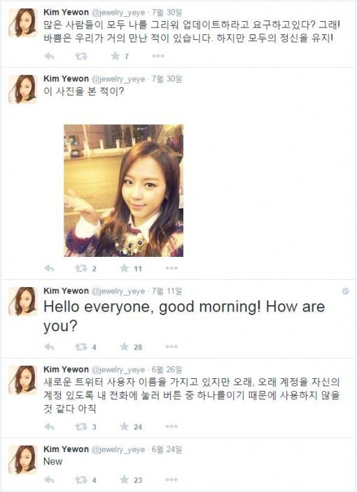 예원은 최근 트위터 계정에 앞뒤 문맥에 맞지 않은 어색한 정체불명의 글이 계속해서 게재돼 해킹의혹이 발생했다.