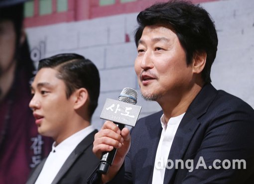 송강호는 11일 서울 강남구 CGV 압구정에서 열린 영화 ‘사도’ 제작보고회에서 “다들 유아인과 안 어울린다고 이야기 하는데 닮으려고 노력했다”고 말했다.