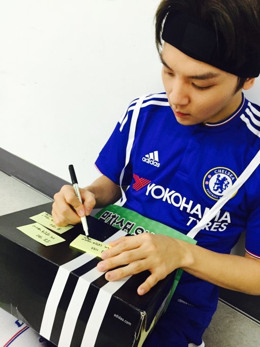공개된 사진 속 리키는 진지한 표정과 자세로 팬들에게 보내는 손편지를 하나씩 정성 들여 쓰고 있다. 특히 팬들에게 보내는 도시락에는 전부 다른 손글씨 메시지가 적혀 있어 보는 이들로 하여금 감탄을 절로 자아냈다.