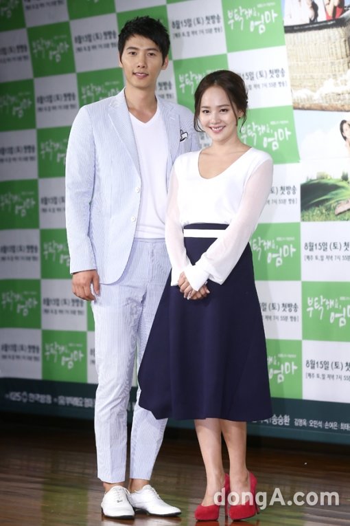 배우 이상우(왼쪽), 유진이 11일 오후 서울시 영등포구 63컨벤션센터에서 열린 KBS 새 주말드라마 ‘부탁해요, 엄마’ 제작발표회에서 포토타임을 하고 있다.
