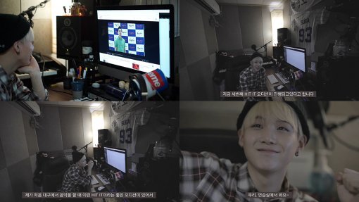 11일 자정 네이버 TV 캐스트를 통해 공개된 응원 영상에는 작업실에서 자신의 예전 오디션 영상을 감상하며 “못 보겠다”고 부끄러워하는 슈가의 모습이 담겨있다.