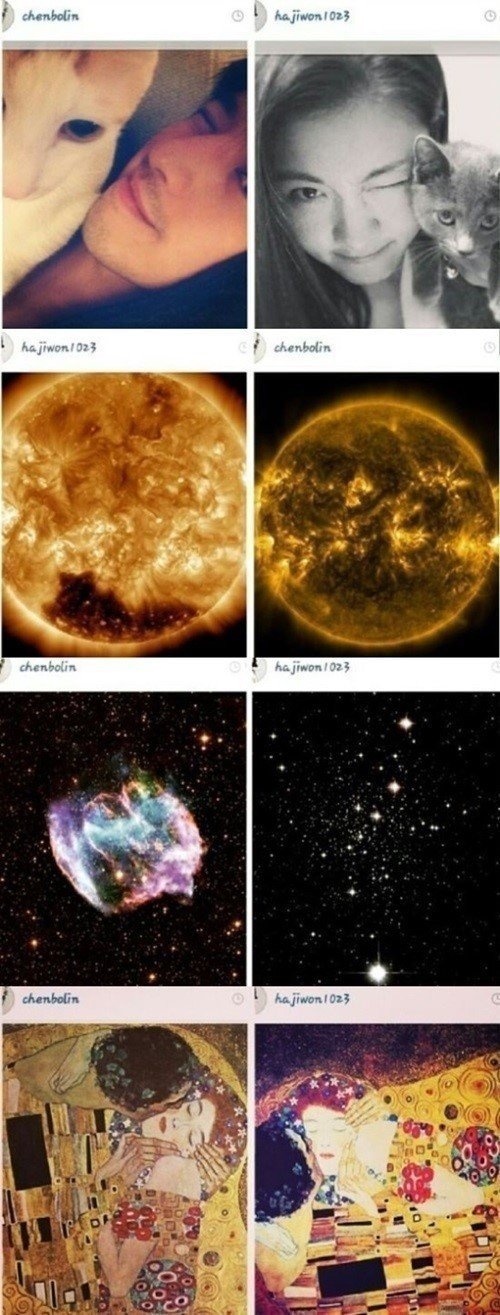 비슷한 포즈로 찍었거나 유사한 이미지가 담긴 사진들이 담긴 각자의 인스타그램 활동은 우연의 일치라고 하기엔 너무 절묘하다는 지적이