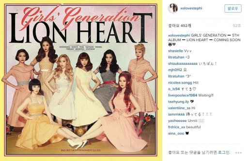 티파니는 11일 오후 자신의 SNS에 “GIRLS‘ GENERATION 5TH ALBUM LION HEART COMING SOON♥”(소녀시대 정규 5집 라이언 하트 커밍순) 이라는 글과 함께 한 장의 사진을 올렸다.