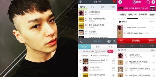 12일 오후 사이먼 도미닉은 음원사이트에서 자신의 신곡 ‘사이먼 도미닉’이 1위를 차지한 모습을 캡처해 올렸다.