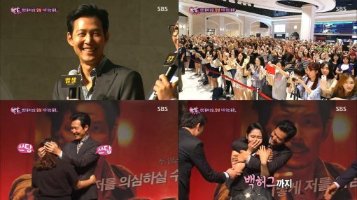이날 방송에는 7일 진행된 이정재의 프리허그 현장이 공개됐다. 이는 영화 ‘암살’의 스코어가 815만을 돌파하면 이정재가 관객 100여명에게 프리허그를 선사하겠다는 공약을 이행한 것으로, 팬들의 폭발적인 환호 속에 이정재는 프리허그는 물론 팬들의 요구에 맞춰 백허그, 쓰담쓰담, 사랑의 총알, 하트춤 등 특급 팬서비스를 선사해 현장을 더욱 뜨겁게 달궜다.