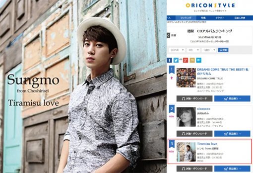 그룹 초신성 성모의 솔로 데뷔앨범 ‘Tiramisu Love(티라미스 러브)’가 오리콘 위클리 차트 3위에 올랐다.