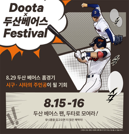 프로야구 두산베어스가 두타(대표이사 조용만)와 함께 15일~16일 이틀간 ‘DOOTA X 두산베어스 Festival’을 진행한다.