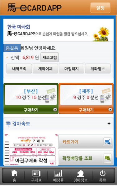 한편 모바일 베팅을 위한 ‘마이카드앱’은 한국마사회 모바일 홈페이지(m.kra.co.kr/main.do)에서 무료로 다운받아 설치할 수 있다.