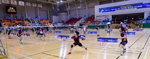 ‘이용대 올림픽 제패 기념 2015 화순 전국학교대항 배드민턴선수권대회’가 13일 전남 화순 하니움문화스포츠센터에서 개막했다. 대회 첫날에는 단체전이 펼쳐졌다. 단체전의 경우 중·고·대학교는 토너먼트, 초등부는 풀리그로 진행된다.