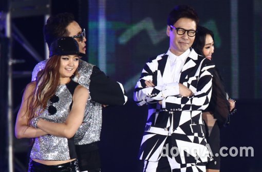 정준하-윤상이 12일 오후 강원도 평창군 알펜시아리조트에서 열린 MBC '2015 무한도전 가요제 영동고속도로가요제'(이하 무한도전 가요제)에 참석해 공연을 하고 있다.