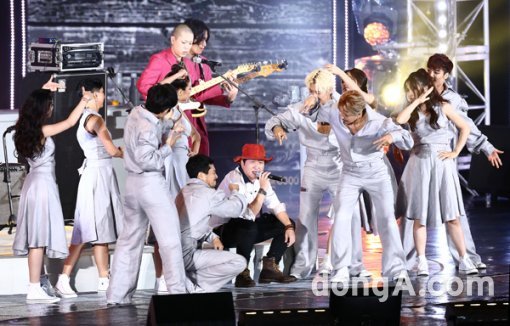 5대천왕(혁오밴드, 정형돈)이 12일 오후 강원도 평창군 알펜시아리조트에서 열린 MBC '2015 무한도전 가요제 영동고속도로가요제'(이하 무한도전 가요제)에 참석해 공연을 하고 있다.