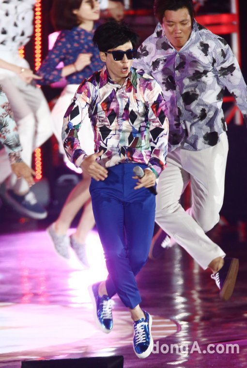 유재석이 12일 오후 강원도 평창군 알펜시아리조트에서 열린 MBC '2015 무한도전 가요제 영동고속도로가요제'(이하 무한도전 가요제)에 참석해 공연을 하고 있다.