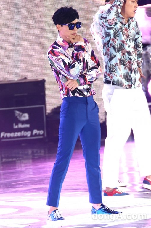 유재석이 12일 오후 강원도 평창군 알펜시아리조트에서 열린 MBC '2015 무한도전 가요제 영동고속도로가요제'(이하 무한도전 가요제)에 참석해 공연을 하고 있다.