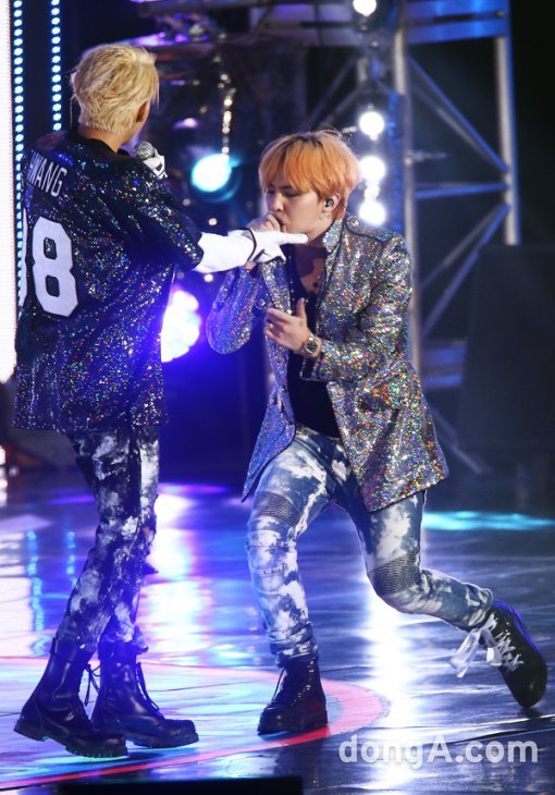 황태지(지드래곤, 태양, 광희)가 12일 오후 강원도 평창군 알펜시아리조트에서 열린 MBC '2015 무한도전 가요제 영동고속도로가요제'(이하 무한도전 가요제)에 참석해 공연을 하고 있다.