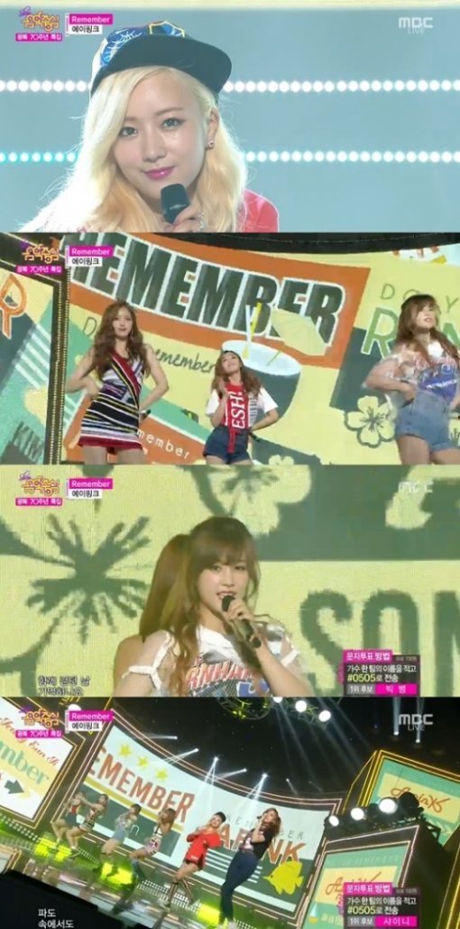 에이핑크는 15일 방송된 MBC '쇼! 음악중심-광복 70주년 특집'에서 '리멤버'를 열창했다. 이들은 노래를 소화하면서 상체를 이용한 포인트 안무를 선보였다.
