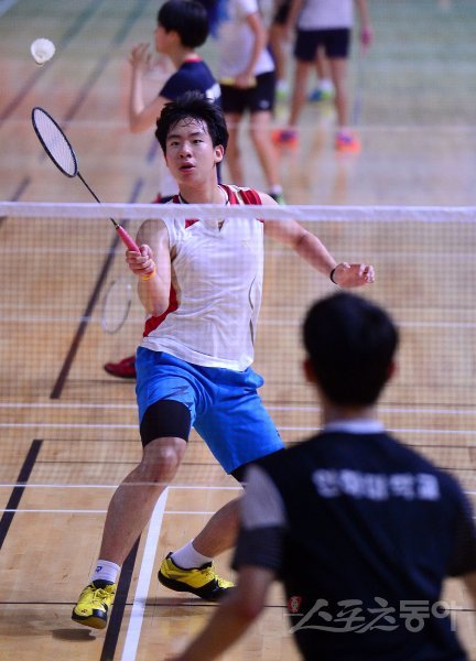 ‘이용대 올림픽제패기념 2015 화순 전국 초·중·고·대 학교대항 배드민턴선수권대회’가 13일부터 19일까지 전남 화순 하니움문화스포츠센터와 이용대체육관에서 열린다. 15일 남자대학부 단체전 결승에서 동의대 강형석이 리턴을 하고 있다. 동의대는 3-0 승리를 거두며 우승을 차지했다. 화순 | 김종원기자 won@donga.com
