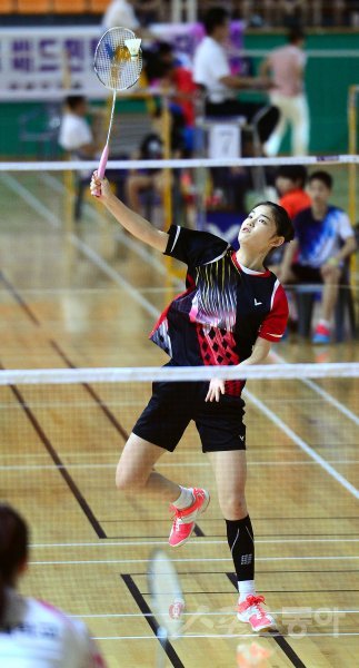 ‘이용대 올림픽제패기념 2015 화순 전국 초·중·고·대 학교대항 배드민턴선수권대회’가 13일부터 19일까지 전남 화순 하니움문화스포츠센터와 이용대체육관에서 열린다. 15일 여자대학부 단체전 결승에서 인천대학교 윤태경이 스매싱 공격을 하고 있다. 인천대는 3-0 승리를 거두며 우승을 차지했다. 화순 | 김종원기자 won@donga.com