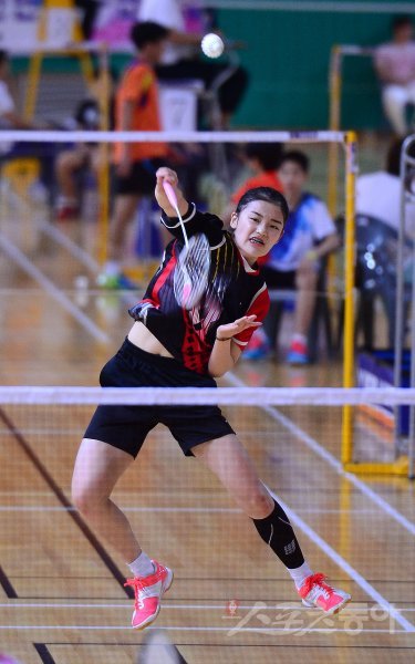 ‘이용대 올림픽제패기념 2015 화순 전국 초·중·고·대 학교대항 배드민턴선수권대회’가 13일부터 19일까지 전남 화순 하니움문화스포츠센터와 이용대체육관에서 열린다. 15일 여자대학부 단체전 결승에서 인천대학교 윤태경이 스매싱 공격을 하고 있다. 인천대는 3-0 승리를 거두며 우승을 차지했다. 화순 | 김종원기자 won@donga.com