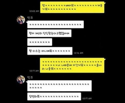 공개된 사진에서 딘딘은 인크레더블에게 “배 아파, 너무 웃기네”라고 말했고 이에 인크레더블은 “형이 제2의 딘딘 찾는다고 했잖아요. 디스는 아니에요”라며 웃었다.