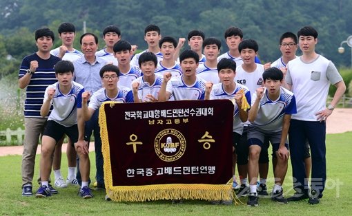 ‘이용대 올림픽제패기념 2015 화순 전국 초·중·고·대 학교대항 배드민턴선수권대회’가 13일부터 19일까지 전남 화순 하니움문화스포츠센터와 이용대체육관에서 열린다. 16일 남자고등부 단체전에서 우승을 차지한 전주생명과학고 선수들이 기념촬영을 하고 있다. 화순|김종원기자 won@donga.com