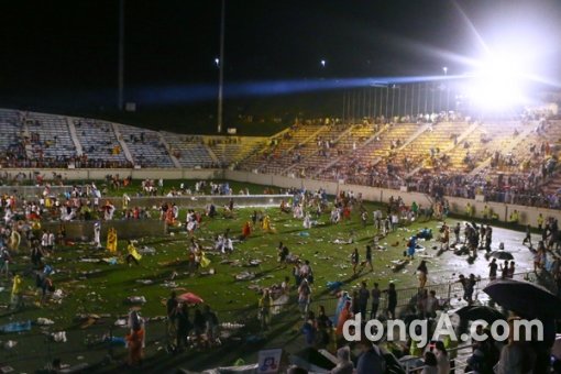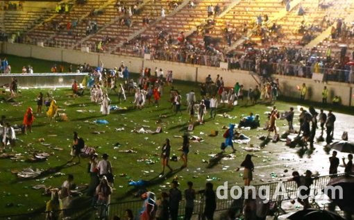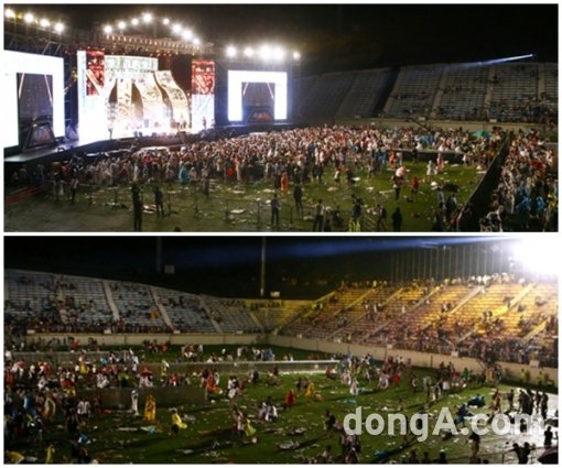 공연이 끝난 후 관객이 퇴장하자 믿을 수 없는 광경이 펼쳐졌다. 하얗게 불태운 잔해(?)들이 공연장에 널려있었다. 관객들이 퇴장을 시작하면서 드러나는 쓰레기들은 그야말로 어마어마했다.