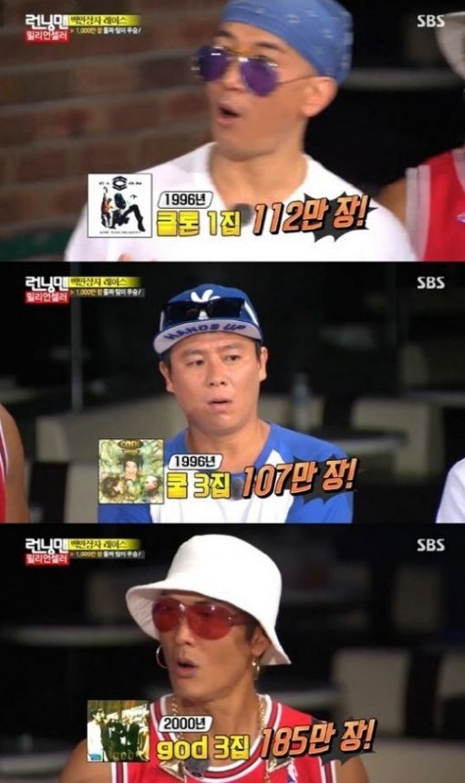 SBS '런닝맨'서 90년대 가요계를 대표하는 가수들의 음반판매량이 공개됐다.