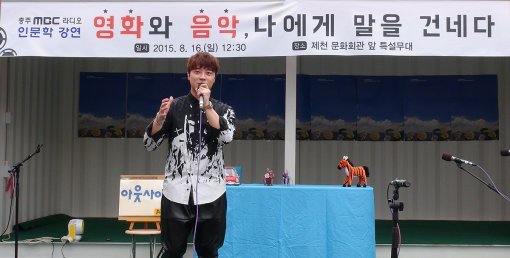 16일 충북 제천시 문화회관 특설무대에서 개최된 제11회 제천국제음악영화제 특집 라디오 인문학 특강 ‘살신성인 : 살아서 신선이 되는 법, 인문학’에서 래퍼 아웃사이더가 "누구보다 빠르게 남들과는 다르게 소통하는 아웃사이더의 인문학 토크 콘서트 - 소통의 인문‘악’"을 주제로 특별 강의를 진행했다.