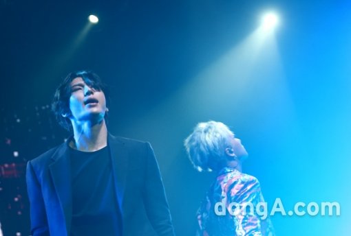 아이돌 그룹 빅스의 유닛 ‘LR(레오, 라비)’이 17일 오후 서울 마포구 서교동 예스24무브홀에서 진행된 빅스 유닛 LR 1st 미니앨범 'Beautiful Liar'(뷰티풀 라이어) 발매기념 쇼케이스에 참석해 공연을 하고 있다.