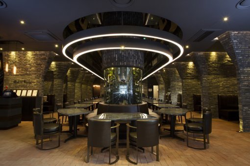 인테리어는 와인케이브를 모티브로 하여 고급스러움이 돋보이는 건축학적인 구조로, 실제 와인케이브에서 주로 사용하는 벽돌을 활용해 빛의 방향에 따라 다른 빛깔을 반사시켜 낮과 밤에 분위기가 다른 이색적인 느낌을 제공한다. 중심부에 라운드 형태의 와인셀러를 구비해 와인 비스트로의 정체성을 강화했다.