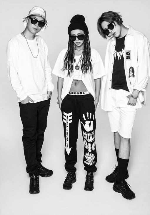 사진 속에는 섹시하면서도 카리스마 넘치는 포즈를 취한 팔로알토, 효린, 지코가 마치 한 팀 같은 분위기를 자아내고 있다.