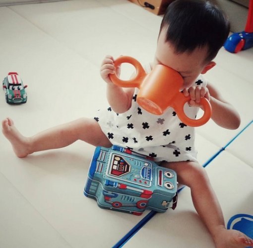 공개된 사진 속에는 소유진 백종원 아들 백용희 군이 물을 마시는 모습이 담겨 있다. 컵에 얼굴을 푹 담그고 물을 마시는 모습이 깜찍하다.