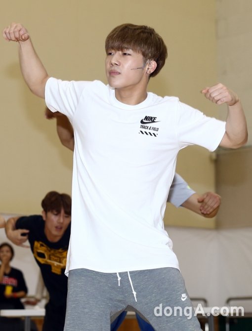 인피니트의 멤버 성규가 19일 오후 서울 중구 남산창작센터에서 열린 뮤지컬 '인 더 하이츠' 연습실 공개에 참석해 리허설을 하고 있다.
