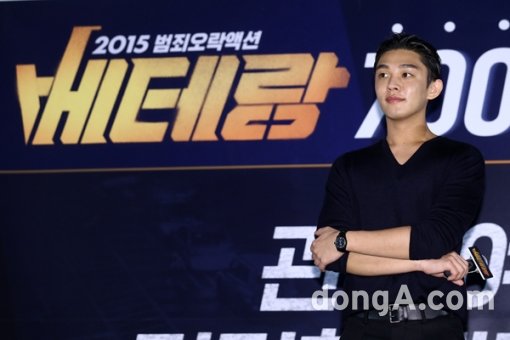 배우 유아인이 19일 오후 서울 영등포구 영등포CGV에서 열린 영화 '베테랑' 700만 돌파 관객 감사 이벤트 행사에 참석해 포토타임을 하고 있다.