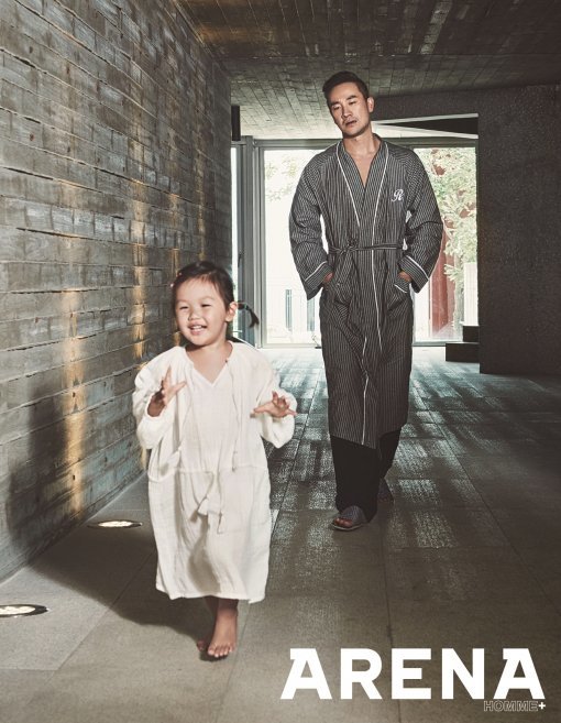 엄태웅과 엄지온이 남성 패션잡지 ‘아레나 옴므 플러스’ 커플 화보를 찍었다.