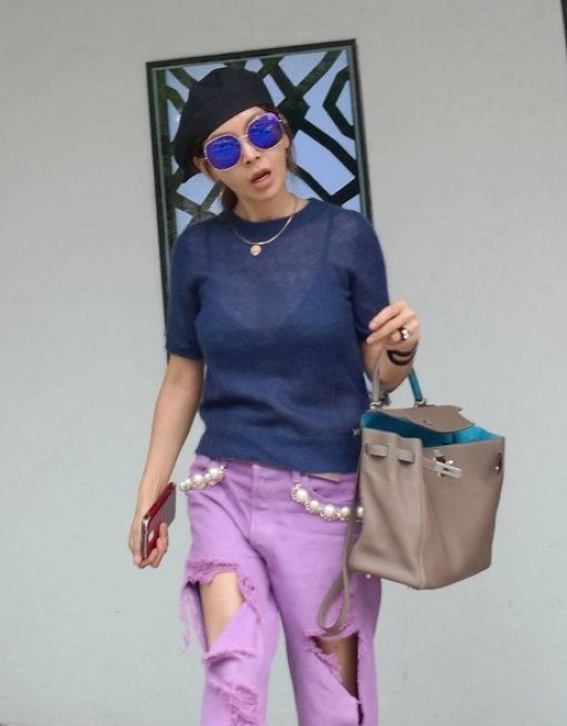 사진 속 황신혜는 선글라스에 모자, 분홍색 찢어진 청바지를 매치해 난해할 법한 의상을 멋있게 소화했다. 특히 속옷이 훤히 드러나 보이는 시스루 상의로 시선을 사로 잡았다.
