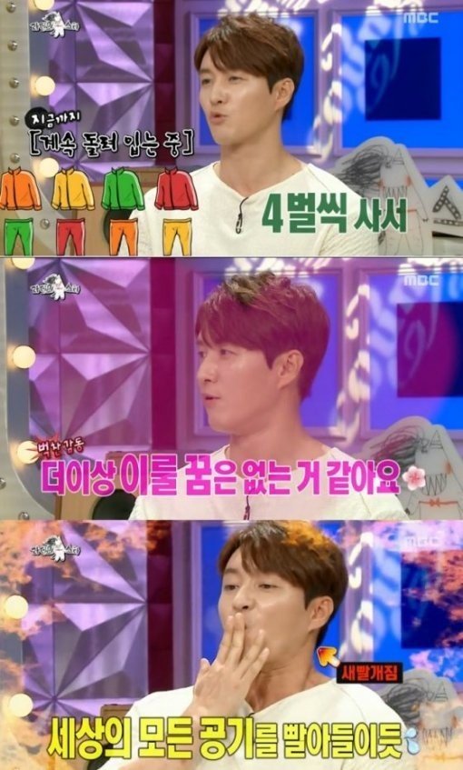 이날 방송에서 심형탁은 지난 2010년에 트레이닝복을 색깔별로 구입한 뒤 옷 쇼핑을 해 본 적이 없다고 고백했고 MC 김구라는 놀라며 “그럼 경조사 갈 때 양복은 상당히 오래됐겠다”고 물었다.
