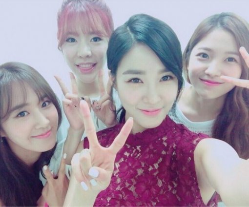 공개된 사진에서 티파니는 붉은색 시스루 의상을 입은 채 유리, 써니, 예리와 환하게 웃고 있다.